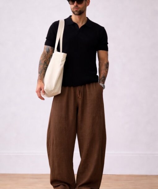 Brown Bubble Linen Baggy Fit Pants