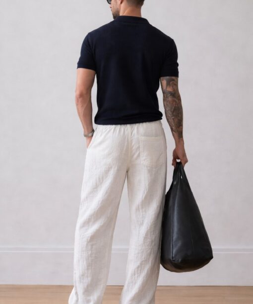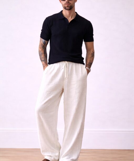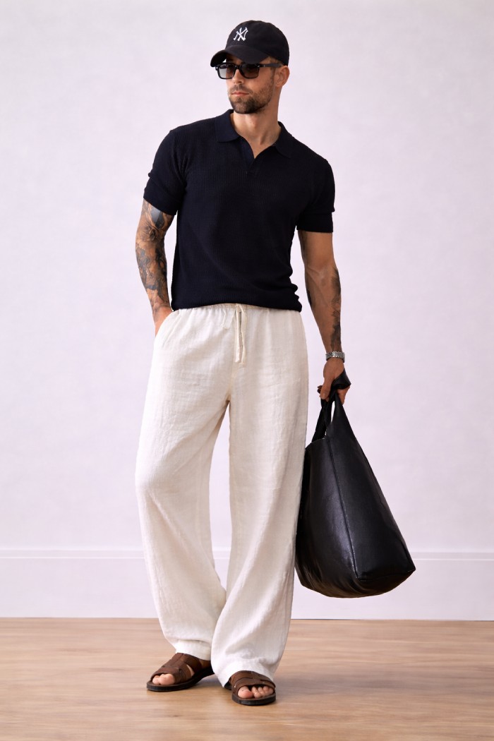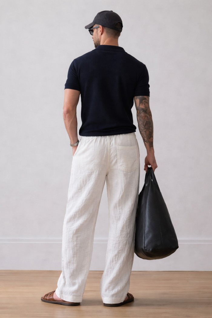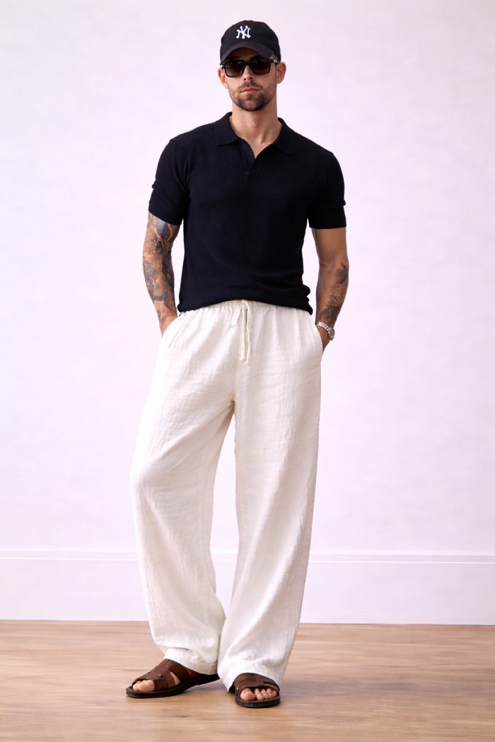 White Bubble Linen Baggy Fit Pants